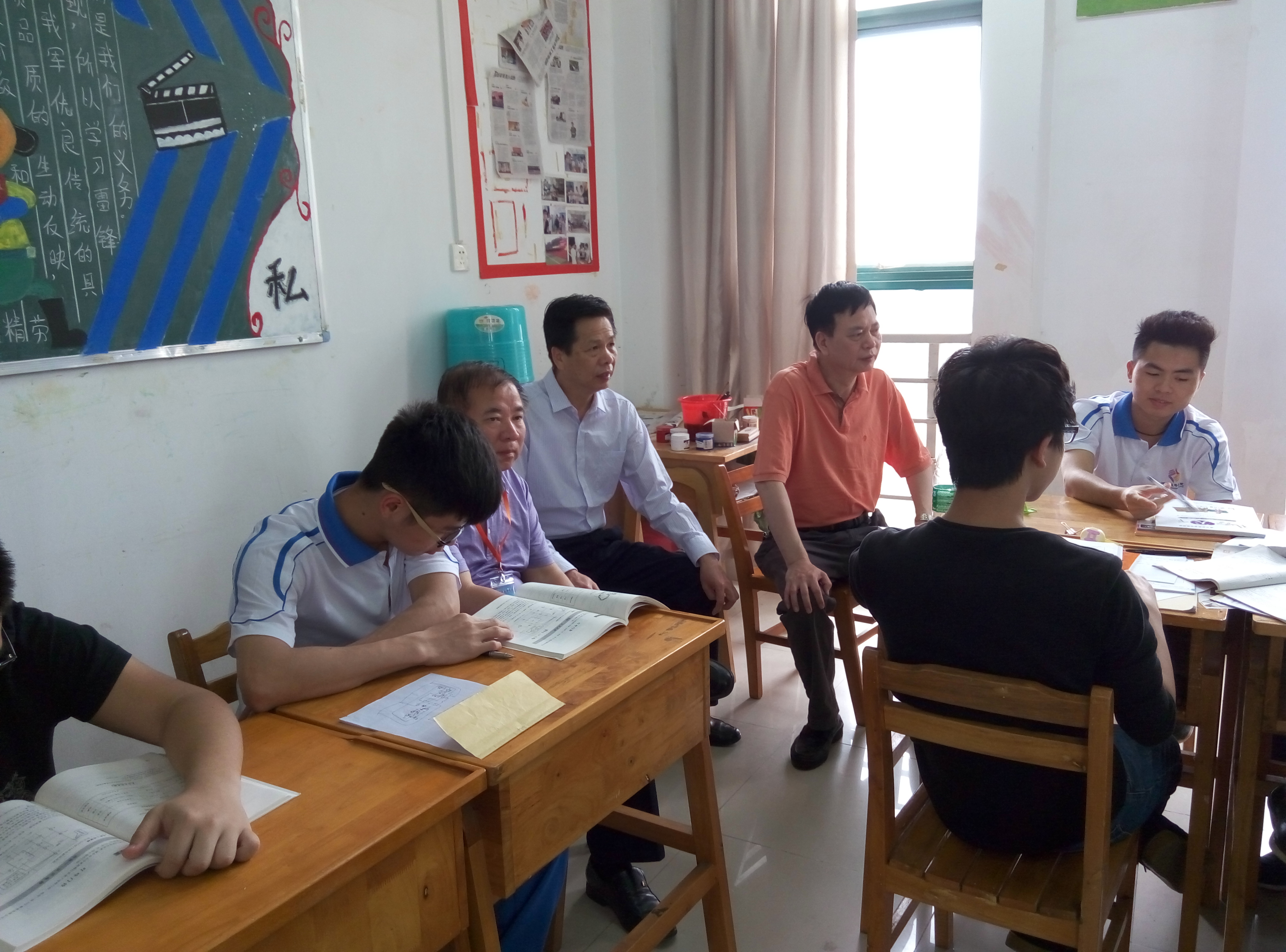 (图三)校领导在14自动化高级班向黄雪东老师了解考证情况