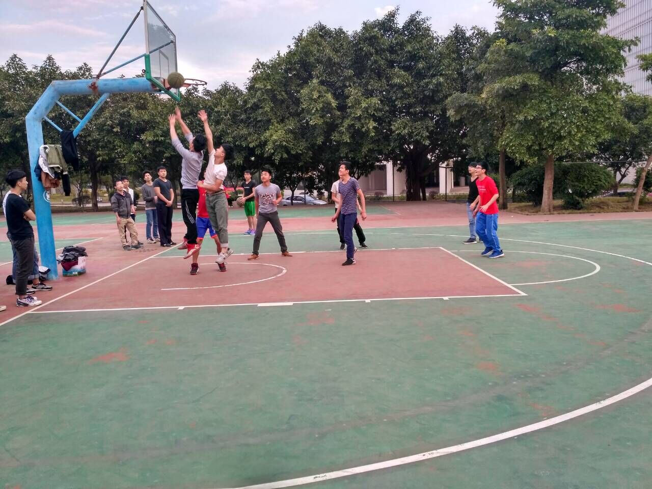 友谊赛在12月6日下午的15自动化1班与15自动化高级2班的对决中拉开序幕。寒风嗖嗖阻挡不住同学们热情澎湃的心情,也阻挡不住队员们健步如飞的动作,一次次完美的上篮,一次次华丽的转身都引起全场尖叫,高高抛起的篮球点燃了本场篮球赛的激情,双方同学抢球、断球、防守、进攻;严守硬对、激烈争夺、默契传球、完美配合,赢得了场下观众们的阵阵喝彩声。经过激烈的角逐之后,最终比分出炉,15自动化高级2班以3分的优势获得了本场比赛的胜利。