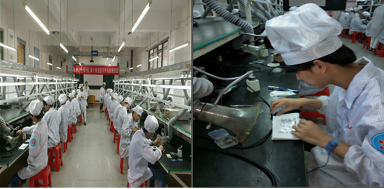 评委老师给每位选手配发电烙铁、电子元器件、直笔等工具。要求每人用最快速度完成作品,选手拿到这些材料认真焊接、接线等一道道程序。