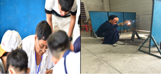 在电焊技能比赛中,评委老师给每位选手配发比赛所需工具和保护设施,要求选手们依照操作流程,确保焊接过程的规范和安全。