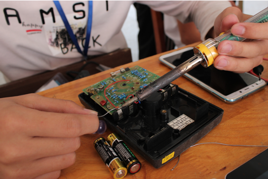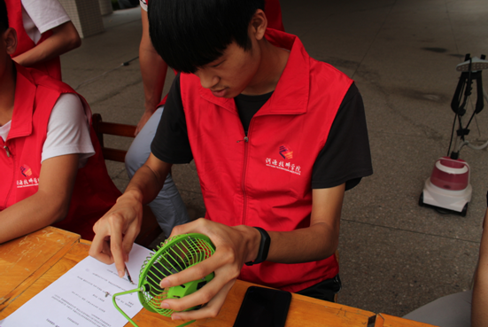 系部党团员和电子维修协会成员在培训楼广场设置了维修点,学院师生络绎不绝地将电器送到维修点维修。维修人员按程序规范有条不紊地进行登记、检查、修理、反馈,场面十分热闹。