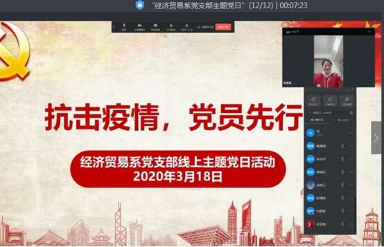 2020-04-30“抗击疫情,党员先行”经济贸易系党支部开展线上主题党日活动“抗击疫情,党员先行”经济贸易系党支部开展线上主题党日活动为进一步贯彻落实习近平总书记关于疫情防控的重要指示精神及中央、省委和学院党委有关部署要求,3月18日,经济贸易系党支部组织全体党员通过视频会议形式开...