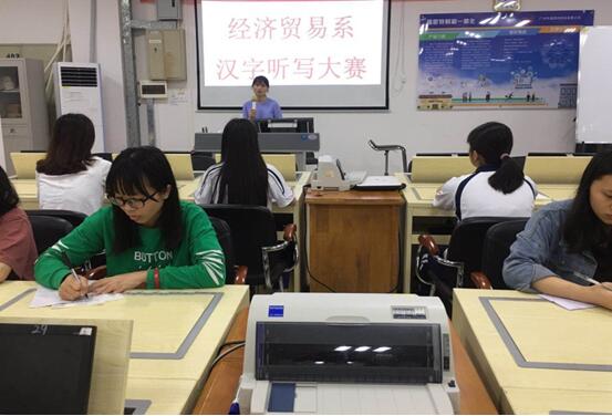 2019-04-26经济贸易系举行汉字听写大赛 为增强学生对祖国汉字文化的了解,规范汉字书写意识,提高汉字书写能力,2019年4月22日下午,经济贸易系在学院培训楼会计实训室组织系部学生举行汉字听写大赛。比赛现场,30名参赛选手表现出极大的热情,聚精会神聆听每一个字、每一个词的读音,...