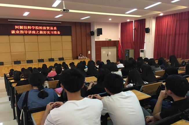 2019-04-26实习,你做好准备了吗——经济贸易系举办就业指导讲座 为帮助2019届实习生做好实习准备,进一步促进学生就业,提高学生就业质量,2019年4月24日下午,经济贸易系在培训楼讲学厅举办就业指导讲座。经济贸易系副主任曾晓莉出席,经济贸易系2019届实习生聆听了讲座。本次讲座由...
