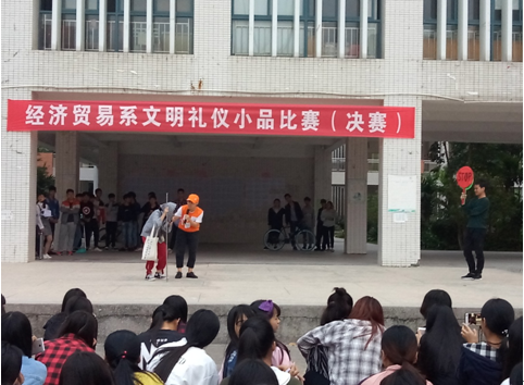 2017-11-01经济贸易系“立勤学之志,做有礼之人 ”团日活动之一:经济贸易系文明礼仪小品比赛圆满落幕 为积极响应学院“立勤学之志,做有礼之人”的要求,2017年10月19日下午,经济贸易系在实训楼广场举行了文明礼仪小品比赛。(图一)16会计高级2班小品《我执勤我快乐》(图二)...