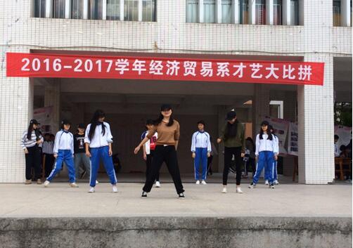 2016-12-30经济贸易系“坚定理想信念·扬中华传统文化”团日活动之一: 经济贸易系举办2016-2017学年第一学期才艺大比拼大赛2016年12月19日,经济贸易系团学会主办的2016-2017学年第一学期才艺大比拼大赛在实训楼广场拉开了序幕。 (图一)热情似火的舞蹈(图二)声情并茂的诗歌...