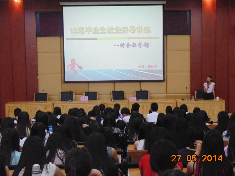 2014-06-27树立正确就业观 积极面对“就业季” 为帮助毕业生树立正确的就业观,5月27日晚,财会教学部在培训楼讲学厅召开“如何树立正确的就业观”主题讲座。讲座由赖妙銮老师主讲,该教学部2012级全体学生聆听了讲座。(图一)老师正与学生互动讲座中,赖老师从当前中、...