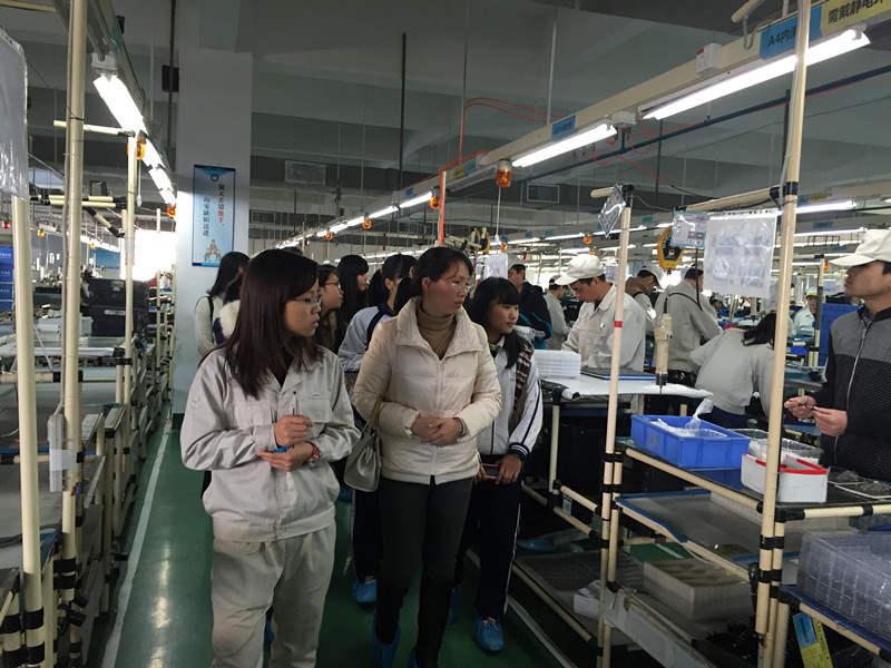 我校一行在工作人员的带领下深入生产车间,现场观察产品的生产工序,了解生产的流程和技术水平。同学们认真观摩,积极提问,工作人员也结合相关专业知识进行了一一解答。活动结束后,13会计5班学生利用班会课针对此次参观学习进行了心得交流。