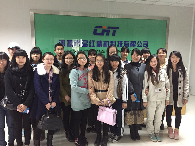 1月14日下午,由欧海标副科长带队,财会教学部主任邓贵霞、副主任欧晓燕、曾晓莉老师及13级会计、物流专业优秀学生共16人到河源市昌红精机科技有限公司进行了参观学习。