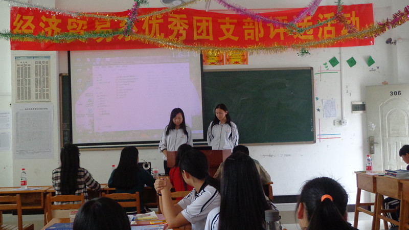 2015年3月30日下午,经济贸易系“优秀团支部”评选活动在培训楼C306课室举行。系副主任曾晓莉、系团总支书记徐斯斯、温丹霞老师和彭斯亮老师担任活动评委。