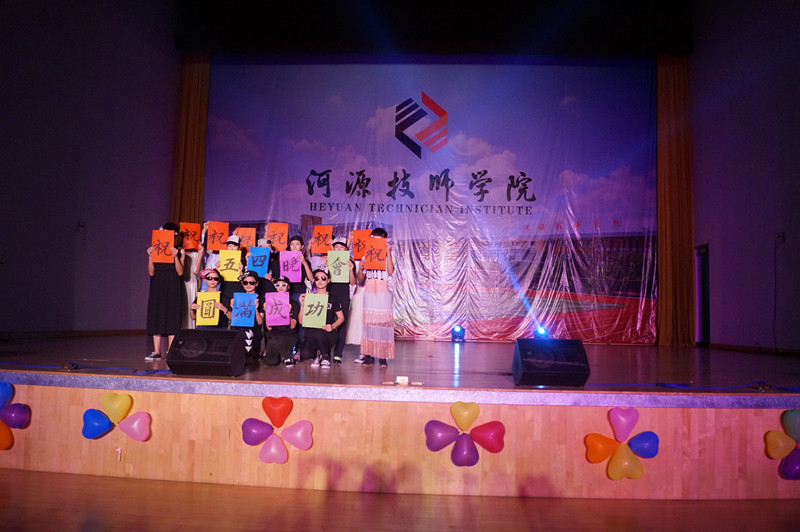 紧接着,晚会由13会计1班合唱的《中国共青团团歌》拉开序幕。舞蹈《Fantastic baby》、《Trap》、《黑色猫咪》及走秀《Perfect Show》表演激情飞扬,活力四射,尽显年轻一代的蓬勃朝气;独唱《海阔天空》和教师代表合唱《在我生命中的每一天》引来了阵阵喝彩;小品《面试》将现场笑场气氛调至高点,幽默风趣的对话赢得现场观众热烈掌声;晚会在合唱《北京东路的日子》中圆满落幕。