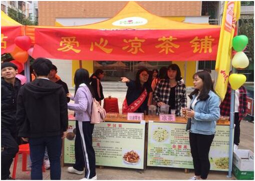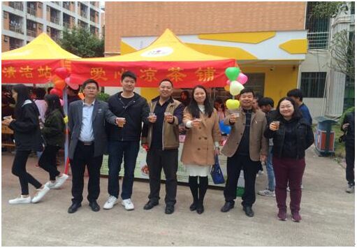 (图二)校团委骆晓红书记、杨科副书记以及各系团总支书记在爱心凉茶铺