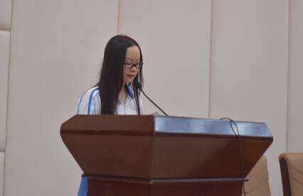 优秀学生干部尤晓慧同学代表上台发言,她感谢各位老师的关怀与教育,同时表达了对今后工作不断完善、积极进取的决心。