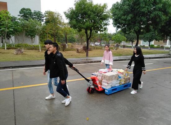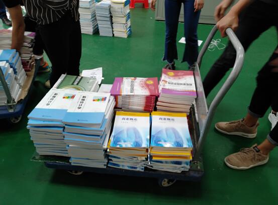 经过一天的努力,同学们顺利把教材全部送到了各个班级。其中一个同学说:这次活动既能让我们体验到入库、分拣、配送等各项专业岗位职能的实际操作,又能服务于系部,真的十分有意义。