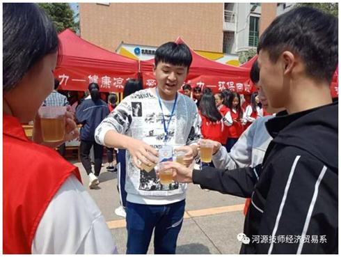 我校七大系部集体举行爱心“街”力活动,我系是爱心“街”力活动——健康凉茶活动。没错,我们经济贸易系已连续不断的送出了无数杯凉茶,深受同学们的喜爱,有时因忙不过来同学们自发过来拿走属于自己的爱心凉