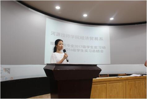 经济贸易系主任刘晓霞就2016级参加TCL王牌电器(惠州)有限公司实习工作进行总结。她对带队指导老师李稷和全体实习学生的表现表示充分肯定,表扬学生在实习中吃苦耐劳、谦虚好学的精神,鼓励学生善学善思,珍惜和规划在校最后一年时间,争取在学习和工作中有更出色的表现。