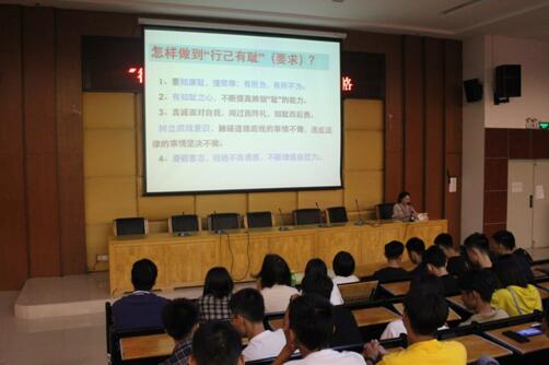 接着,吴亚惠老师以“青春有格——行己有耻,止于至善”为主题,为全系学生开讲第一课。她以郭明义20多年无偿献血,默默助人的高尚品格为切入点,围绕“行己有耻”和“止于至善”两个方面做了详细而又生动的讲解,重点讲解了要知廉耻,懂荣辱;有所为,有所不为。