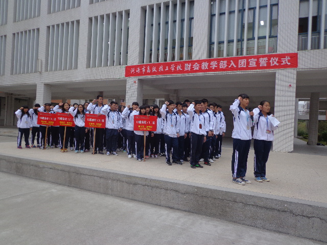 11月19日下午,财会教学部团总支在实训楼广场隆重举行新团员入团宣誓仪式。入团宣誓仪式由曾晓莉老师主持,550名新团员面对鲜艳团旗,举起右手庄严宣誓。