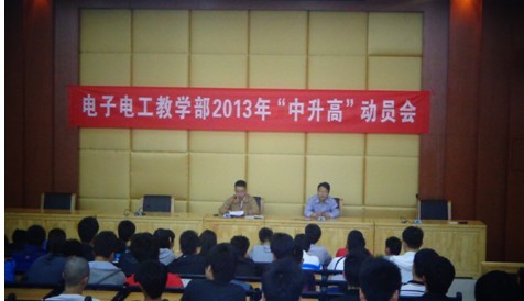 电子电工教学部将设“高级部” 4月26日晚,电子电工教学部在培训楼讲学厅召开了2013届毕业生“中升高”动员大会。会...