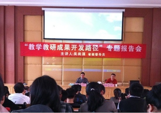 我校举行教学教研成果开发路径专题讲座 12月17日下午,我校在培训楼讲学厅举行教研教学专题讲座。讲座由中国职协学...