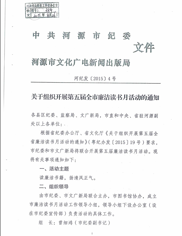 关于组织开展第五届全市廉洁读书月活动的通知