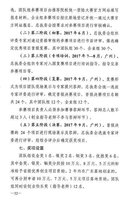 团队组分别按10万元、8万元、5万元的标准对金奖、银奖、铜奖项目给予省级优秀创业项目资助,同时由大赛组委会颁发获奖证书。2年内在广东落地创业的,可再分别申请10万元、7万元、5万元项目落地资助。优胜奖项目由大赛组委会授予获奖证书。创业伯乐奖(指导老师)由大赛组委会授予获奖证书。