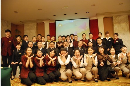 (图一)我校实习学生与翔丰国际酒店培训老师们合影
