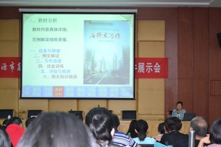 会上,曾获得2012年学校说课比赛一、二等奖的叶蓉、刘川老师分别作精彩的说课展示,她们精美的课件及完善的教学流程让教师们对说课方式有了新的感悟和体会。为提高广大教师课件制作水平,教研室张国花老师还围绕在全国比赛中获奖课件的优点、课件制作标准、本校教师制作课件存在的问题、如何提高课件水平四个方面作了详细的讲解。
