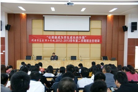 为提升班主任业务水平,增强学生管理工作实效,4月1日下午,我校在实训楼讲学厅召开班主任培训会议。会议由张海锋副校长主持,全校班主任和部分生活指导老师参加了会议。