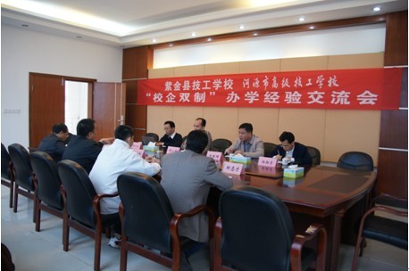 张海锋副校长、教务科刘俊侃科长、学生科黄志平科长及招生就业科邱志才科长热情接待了来访一行,并在一号楼小会议室召开办学经验交流会。会上,张海锋副校长详细介绍了我校“校企双制”合作办学,尤其是与企业合作开展“冠名班”,为企业定向培养人才的经验。同时,他还分享了我校开展退役士兵职业培训的做法,如如何加强对退役士兵的日常管理、如何有针对性地安排教学课程等。在听取了我校相关经验介绍后,来访一行纷纷表示受益匪浅,并对此进行了充分的交流。