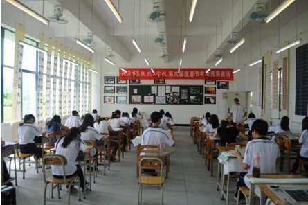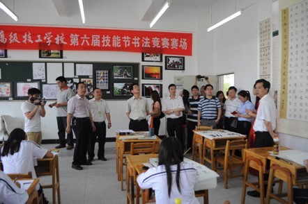 昨日,第六届技能节书法比赛在高技能实训基地A102教室举行决赛。河源市书法家协会副秘书长温雄辉、练绍锋及广东省书法家协会会员朱景扬三位老师应邀担任评委。