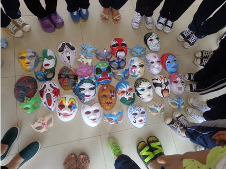 据了解,指导学生制作面具成品是对图案传统教学的一种突破,学生需把在平面上完成的图案绘制“搬到”立体面具上,不仅能提高其绘画技巧,也能激发其创新意识。这批面具成品还在7号楼进行了展出,受到老师和同学们的一致好评,大大增强了学生的自信心。
