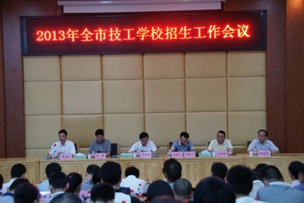 常务副市长彭定邦作重要讲话,他指出,大力发展技工教育是推动我市经济加速发展的战略选择、是推进我市“扶贫双到、脱贫奔康”工作的现实要求、是提高我市就业人员能力的迫切需要,各级人力资源和社会保障部门不仅要认真研究和采取措施,加强对招生工作的组织领导,还要充分发挥基层劳动保障平台作用,深入到各村共同做好招生宣传和协助招生工作。技工学校要加强内涵建设,提高办学质量,积极开展校企合作,突出技工教育特色,深入各中学、各村开展宣传活动,提高技工教育知名度,增强吸引力。他鼓励相关工作人员要继续发扬团结奋斗的精神,采取有力的措施,鼓实劲、出实招,打硬仗、打胜仗,努力开创我市技工教育招生、建设和发展的新局面。
