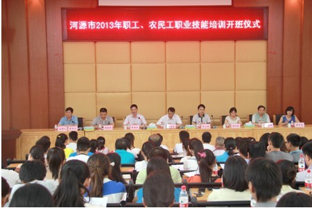 7月26日,我校在培训楼讲学厅顺利举行河源市2013年职工、农民工职业技能培训开班仪式。会议由张运达副校长主持。市总工会副主席向更祥;市人力资源和社会保障局副局长张文胜,党组成员、我校校长黎海波;市财政局社保科科长谢丽莉;市人力资源和社会保障局就业促进科科长谢振球、就业服务管理中心主任杨建明等领导出席了开班仪式。