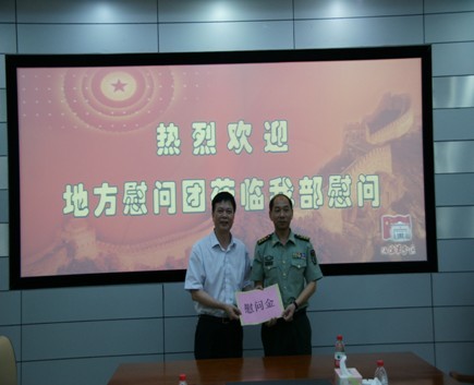 (图二)黎海波校长为河源军分区官兵送上慰问金