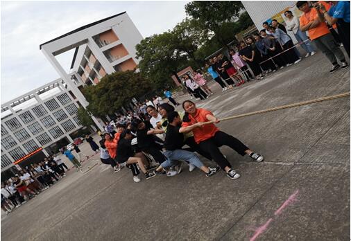 学院八号楼广场上呐喊声欢呼声此起彼伏,比赛的队伍各就各位,只听裁判一声哨响,比赛现场立刻沸腾起来,加油声此起彼伏,喧嚣振耳,大家都卯足了劲,寸土必争。转瞬之间,实力悬殊较大的队伍就会即可分出胜负,而实力均衡的,也会因闪失、经验等原因而渐见高下。双方都非常激烈,男生们个个面红耳赤,青筋爆出,女生也不甘示弱,放下平时淑女的风范使尽浑身力气,队员们表情丰富,让人忍俊不禁,比赛过程高潮迭起,精彩纷呈。