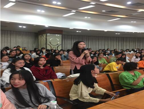 接着,吴丽娴老师以“女神养成记”为题,亲切地将在场女生称为女神,让女生们参与讨论“女神的标准是什么”。吴丽娴老师把女神的标准娓娓道来,认为女神就是白、富、美,她通过视频、图片并结合故事、实际案例来解释,“白”是白于品行,洁身自好;“富”是富于精神,自强自立;“美”是美于心灵,内外兼修。吴丽娴老师风趣幽默的语言,非凡的个人魅力深受在场女生的喜爱,讲座过程中笑声不断、掌声不断,女生们积极抢答问题。