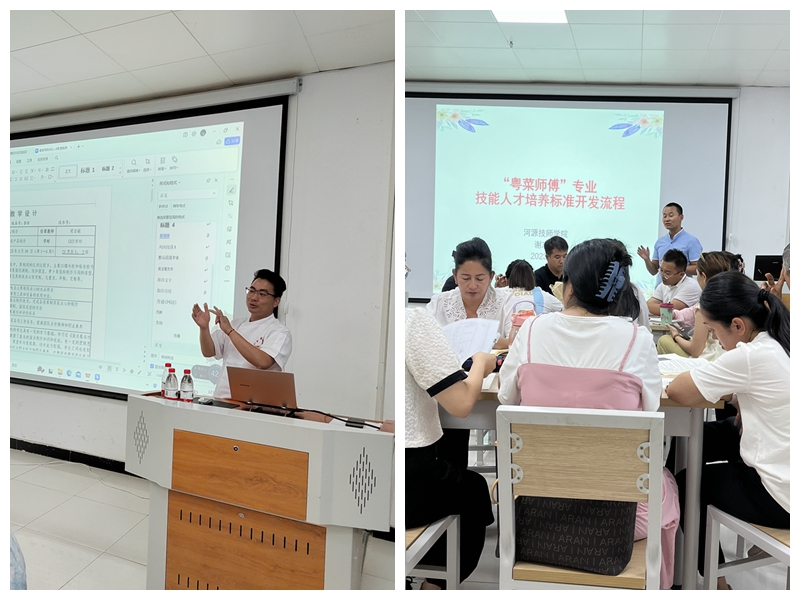培训期间,谢志海,杨衍城两位老师从工学一体化教学中提取典型工作任务、人才培养方案的撰写与课程标准修订、教学资源建设方法与途径、精品课程建设路径的探索与实践改革、课程思政的框架搭建与课例建设等方面,为喀什技师学院烹饪工艺系相关老师开展培训,不断提升其教育教学能力。