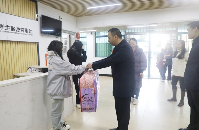 据了解,随着冬日的到来,气温断崖式下降,部分家庭经济困难学生缺乏保暖的棉被等抗寒物资,张海锋院长了解情况后,心系学生,当天就为十余名同学送上“冬日大礼包”,切实解决同学们急难愁盼问题。