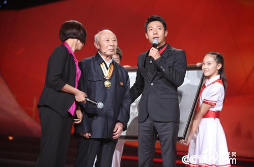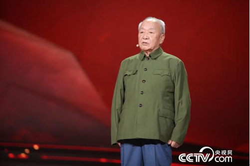 随后,节目现场举行了一次特别的升旗仪式,由国旗班战士护旗、104岁的老红军秦华礼作为先辈的代表升旗,在庄严肃穆的国歌声中,五星红旗冉冉升起,主持人号召青少年接过老兵的旗帜、走好我们这一代人的长征路,现场激荡着浓浓的爱国热情。