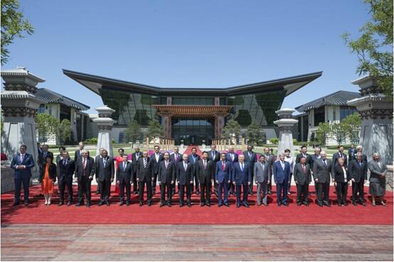 5月15日,“一带一路”国际合作高峰论坛圆桌峰会在北京雁栖湖国际会议中心举行,国家主席习近平主持会议并致开幕辞。这是第一阶段会议结束后,习近平同外方代表团团长及嘉宾在雁栖湖国际会议中心前合影。新华社记者 姚大伟 摄