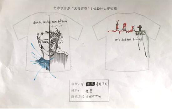2017-06-27艺术设计系“六月禁毒”主题团日活动:“无毒青春”T恤图案设计大赛 2017年6月16日,艺术设计系历时两周的T恤图案设计大赛落下帷幕。本次大赛以学院团委“无毒青春·健康生活”精神为指导,以“无毒青春”为主题,吸引了50多位参赛选手参加。 (图一)一等奖作品&n...