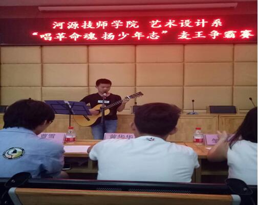 2017-04-21“尊崇革命传统争当合格青年”系列活动之三: 艺术设计系举行“唱革命魂·扬少年志”麦王争霸赛 2017年4月19日晚,艺术设计系在培训楼讲学厅举行“唱革命魂·扬少年志”麦王争霸赛,以歌唱的方式,传承革命优良传统,发扬当代青年学子意气。选手们精心准备,比赛时积极...