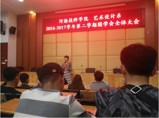 2017-04-12尊崇革命传统·争当合格青年——艺术设计系召开2016-2017学年第二学期团学会全体第二次会议 2017年4月9日晚,在培训楼讲学厅召开了本学期第二次团学会全体大会。艺术设计系团总支书记曹雪老师主持,艺术设计系团学会全体成员参加了会议。 (图一)曹雪老师讲话(图二)...