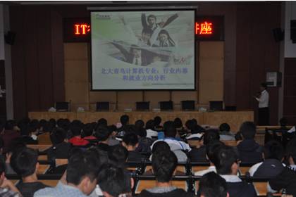 11月19日晚,计算机教学部在培训楼讲学厅举行“IT行业最新发展动向”讲座。讲座特地邀请了北大青鸟广东省服务中心的鲁迎春老师为北大青鸟专业学生介绍当前IT行业发展动态,令该专业学生受益匪浅。
