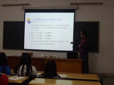 会中肖碧波老师提到:最重要的是策划书的撰写,肖老师告诉大家首先是整体市场分析,面对全校师生进行调查定位。然后就是市场竞争,要了解有哪些竞争对手,以及对手的优劣势。并针对校园市场做出正确的分析,更好的抓住机会快一步。一份好的营销策划要有创新、要有突破。