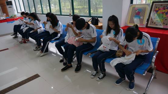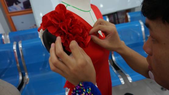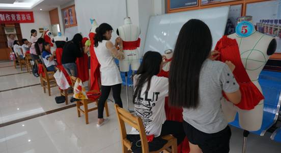 (图三)选手们在红彤彤的礼服上妙手生花