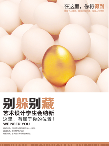 为了培养2015级新生的实践能力和务实精神,为新生提供一个展示自我的平台,增强艺术系学生干部队伍建设。经过近一个月的前期筹备工作,9月23日下午,艺术设计系团学会纳新活动在实训楼A栋207顺利举行。艺术设计系李娜主任,系团总支书记袁荣豪老师,学生会主席陈嘉洛同学担任了此次纳新的面试官。