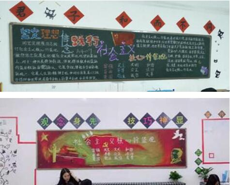 为更好地营造培育和践行社会主义核心价值观的良好氛围,2016年11月7日,艺术设计系在各班开展“鉴定理想信念 践行社会主义核心价值观”为主题的黑板报评比活动。