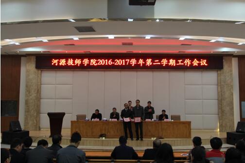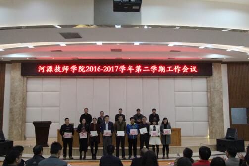 会上,各副院长就分管线口对学期初各项工作作了具体的安排。院领导分别为第七届全国数控技能大赛广东选拔赛优秀指导老师、中国职协2016年度优秀科研成果获奖教师颁奖。